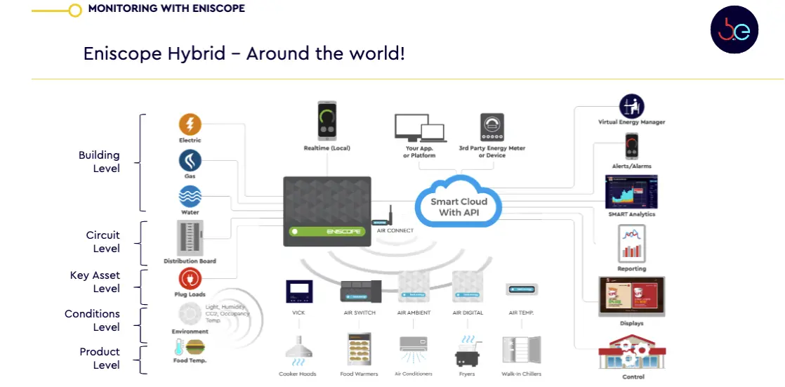 Eniscope is a cutting-edge energy management solution trusted around the world to deliver unmatched transparency across all layers of a facility. From tracking entire building utilities like electricity, gas, and water, down to individual appliance-level usage and product-specific metrics such as food temperature, Eniscope provides a centralized platform for total visibility. By integrating with sensors, environmental monitors, and third-party devices, it captures real-time data across building, circuit, asset, conditions, and product levels. Feeding this information into a Smart Cloud System with API access. This enables advanced analytics, customizable alerts, automated reports, and control interfaces—all accessible through your own apps or platforms.