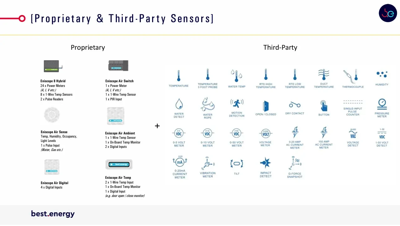 Eniscope supports sensors for utilities, environment, and equipment—delivering real-time data for smarter energy management.