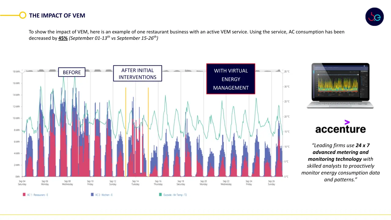 Typical savings range from 15% to 43% depending on current inefficiencies and follow up actions taken after monitoring insights.